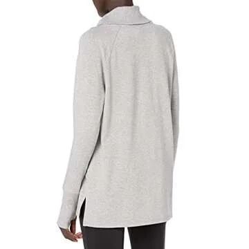 Show more Introducing the Amazon Essentials Women's Studio Terry Long-Sleeve Funnel Neck Tunic, the perfect blend of style, comfort, and functionality for your daily wardrobe. Crafted from a soft, moisture-wicking terry fabric with a gentle four-way stretch, this tunic allows for easy movement while keeping you cozy all day long. The contemporary funnel neckline provides an approachable yet chic aesthetic, making it suitable for a variety of occasions, while thumbholes offer added warmth during cooler days.
