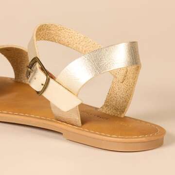 Amazon Essentials Women's Two Strap Buckle Sandal, Gold, 8