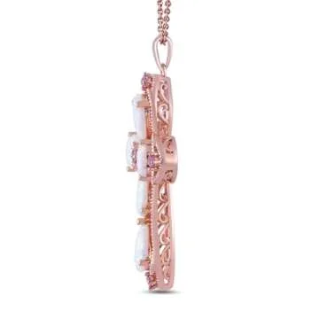 Amazon Essentials Womens 14K Rose Gold over Sterling Silver Created Opal with Created Pink Sapphire Cross Pendant Necklace, 18", (previously Amazon Collection)