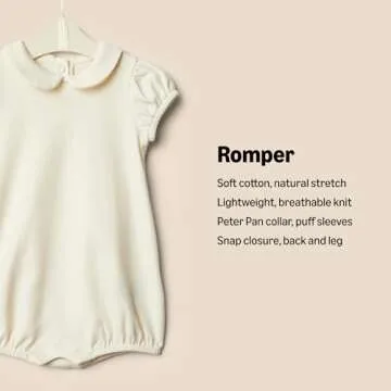 Each romper sports a beautiful Peter Pan collar and gathered puff sleeves, enhancing their cute aesthetic. Parents will appreciate the practical design – with a back snap placket for easy dressing and a gusseted snap closure at the leg opening for hassle-free diaper changes. The regular fit ensures these rompers allow for natural movement, perfect for an active baby. With thoughtful stitching and construction, these pieces are designed to withstand wear and tear, making them a reliable choice for everyday use.