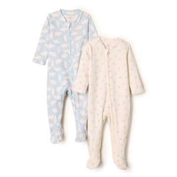 Amazon Essentials x Sofia Grainge Unisex Babies' Cotton Footed Sleep and Play Bodysuit, Pack of 2