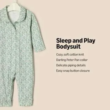 Show moreIntroducing the Amazon Essentials x Sofia Grainge Unisex Babies' Sleep and Play Bodysuit, a luxurious pajama set designed to envelop your little one in ultimate comfort! Crafted from the softest, 100% cotton knit fabric, these bodysuits are perfect for tiny fashionistas aged 0-3 months. The charming pale green and posey floral design adds a delightful pop of color, ensuring your baby not only feels cozy but also looks adorable while they sleep or play.