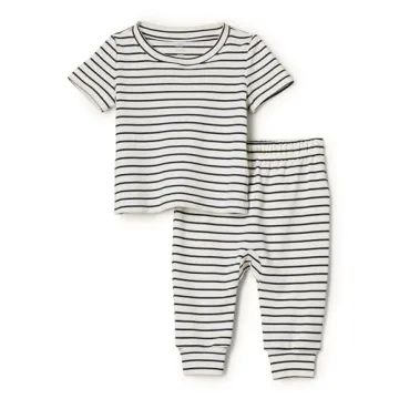 Show moreDiscover the perfect blend of comfort, style, and practicality with the **Amazon Essentials x Sofia Grainge Unisex Toddlers' Pant & Top Set**. Designed in collaboration with the renowned Sofia Grainge, this adorable outfit is made from baby-soft cotton knit fabric that ensures your little ones feel cozy and stylish all day long. Featuring a classic tapered stripe style in a charming navy hue, this set is the ideal choice for active toddlers ready to explore their world. The short-sleeve tee with a crew neckline provides ultimate breathability, while the pull-on pants with elastic waist and cuff detail ensure a snug and comfortable fit. Whether it's playtime or a family outing, this outfit stands up to the demands of energetic toddlers, guaranteeing both functionality and fashion, making mommy’s life easier.
