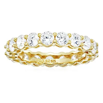 Show moreIntroducing the Amazon Essentials Yellow Gold Over Sterling Silver Round Cut Cubic Zirconia All-Around Band Ring, a timeless treasure that seamlessly blends elegance with modern sophistication. This exquisite eternity band showcases captivating 3.5mm round cubic zirconia stones, radiating brilliance and sparkling charm. Perfect for engagements, anniversaries, or simply embellishing your everyday style, this classic accessory redefines beauty and versatility. Crafted carefully from high-quality sterling silver, its hypoallergenic properties ensure ultimate comfort, making it gentle on sensitive skin. The lustrous 18k yellow gold plating enhances the design, giving the ring a luxurious glow that is bound to catch the eye. Whether worn alone for a minimalist look or stacked with other rings for a statement, this size 8 ring promises to elevate your fashion gracefully.