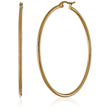 Show more Introducing the Amazon Essentials Yellow Gold Plated Stainless Steel Rounded Tube Hoop Earrings (50mm), the epitome of elegance and timeless style. Designed to redefine accessory fashion, these hoops are crafted from high-quality hypoallergenic stainless steel and come adorned with a stunning 14K yellow gold plating. With a diameter of 50mm, these earrings are the perfect size – substantial enough to catch the eye without overwhelming your look. Whether you're dressing up for a special occasion or looking to elevate your everyday wear, these hoops promise to be your new favorite statement piece.