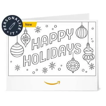 Introducing the Amazon Gift Card - Print - Happy Holidays Ornaments, the ideal present for any occasion! This versatile gift card allows you to select your preferred denomination and design, making it perfect for everyone on your gift list. Whether it’s for a birthday, a holiday celebration, or just a ‘thinking of you’ gesture, this gift card offers the flexibility to let the recipient choose exactly what they want. With Amazon's reputation for reliability and security, you can rest...