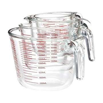 AmazonCommercial Glass Measuring Cup Set, 4 Piece Set Includes 1 Cup, 2 Cup, 4 Cup, and 8 Cup