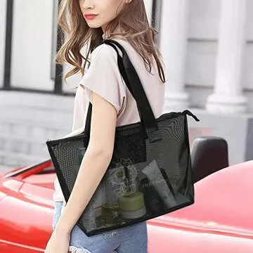 Show moreDiscover the perfect blend of style and functionality with the AmBealla Large Tote Bag for Women! Crafted from high-quality nylon, this large satchel is not only durable but also ensures a long-lasting solution for all your travel and storage needs. The elegant black transparent mesh design allows for easy visibility of contents, eliminating the frustration of rummaging through your bag. This versatile bag is designed specifically for women who appreciate both practicality and aesthetics in their everyday accessories.
