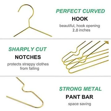 Amber Home 20 Pack 12 Inch Gold Kids Baby Hangers, Strong Metal Children Clothes Hangers for Closet, Space Saving Infant Hanger for Toddler Coats Pants (Gold, 20)