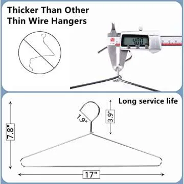 Show more Introducing the **Amber Home 20 Pack Heavy Duty Metal Shirt Coat Hangers**, your ultimate solution for an organized and stylish wardrobe. Crafted with a sleek **0.16" thickness gage (4.0 mm)**, each hanger measures **17 x 7.87 inches**, designed to comfortably fit standard clothes rods while maximizing your storage space. This pack of 20 is perfect for reimagining your closet and making full use of every corner, giving your clothes the room they deserve.