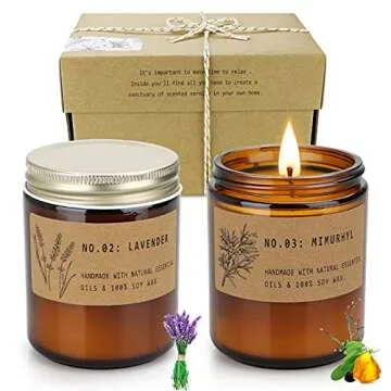 Show more Indulge in a world of tranquility with our exquisite Amber Lavender Scented Candles, designed to transport you to the serene lavender estates of France. This stunning two-pack set includes 7.1 oz soy wax candles that elegantly blend the relaxing aromas of lavender and warm amber. Tailored for both aroma enthusiasts and decor aficionados, these candles create an environment that is soothing and inviting while enhancing the aesthetic of any space. Each candle is made from 100% natural soy wax, ensuring that you not only enjoy a delightful scent but also choose an eco-friendly option that aligns with health-conscious and environmentally-aware lifestyles.