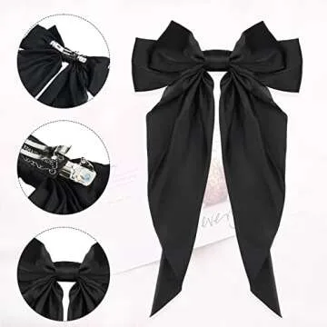 Each bow features a long tail design that adds a touch of fun and sophistication to any hairstyle, whether it be braids, ponytails, or loose waves. Crafted from high-quality satin silk fabric, these accessories are not only visually appealing but also incredibly comfortable to wear. The strong metal clips ensure a secure fit, keeping the bows in place without slipping, making them ideal for active lifestyles.