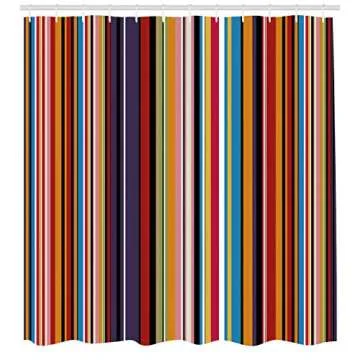 Ambesonne Abstract Shower Curtain, Vibrant Colored Stripes Vertical Pattern Funky a Modern Tile Illustration, Cloth Fabric Home Bathroom Art for Bath Decor Set with Hooks, 69" W x 70" L, Orange Purple