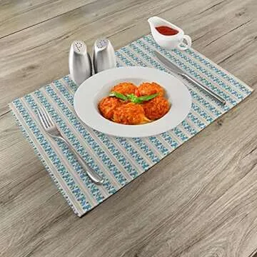 Ambesonne Ivory and Blue Place Mats Set of 4, Romantic Roses with Retro Stripped Background Vertical Illustration, Washable Fabric Placemats for Dining Room Kitchen Table Decor, Ivory Blue Green