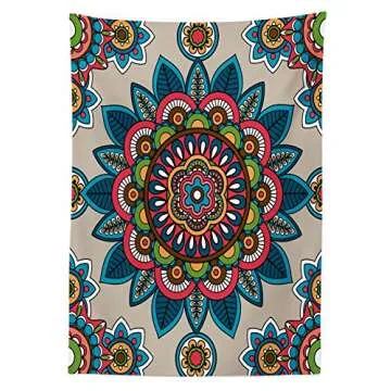 Ambesonne Mandala Tablecloth, Retro Turkish with Unique Leaf Flower Meditation Tribal Art Print, Rectangular Table Cover for Dining Room Kitchen Decor, 60" X 90", Coral Blue