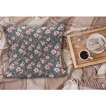 Ambesonne Shabby Flora Fluffy Throw Pillow Cushion Cover, Vintage Style Vibrant Roses Leaves Bush Buds Stems Rural Area Classical, Decorative Square Accent Pillow Case, 36" x 36", Multicolor