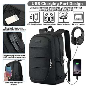 AMBOR Travel Laptop Backpack for Men - 17.3 Inch Laptop, USB, Anti-Theft