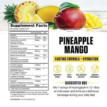 Ambrosia Hydroglyph Intraworkout Formula w/BCAA + EAA + Electrolytes Hydration Powder to Protect Lean Muscle, 0g Sugar Fasting Hydration Drink Mix, Made w/Coconut Water (Pineapple Mango)