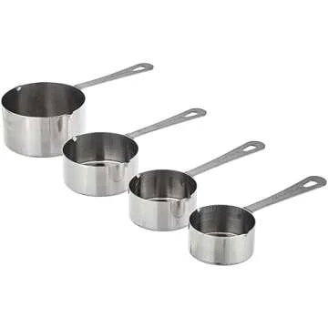 Show more Introducing the Amco Stainless Steel Measuring Cups Set of 4, the perfect addition to any kitchen for precise baking and cooking. This thoughtfully designed measuring cup set includes a 1/4-cup, 1/3-cup, 1/2-cup, and 1-cup, ensuring you have all the essential sizes for all your culinary needs. Made with high-quality stainless steel, these cups are not only durable but also guarantee longevity, even through years of culinary adventures.