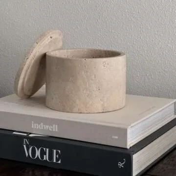 AME GEMELLA Travertine Stone Treat Jar with Lid - Premium Dog and Cat Treat Container - Elegant, Food-Safe Storage - Heavy, Non-Slip, Easy to Clean - Modern Pet Treat Canister (Tulum)