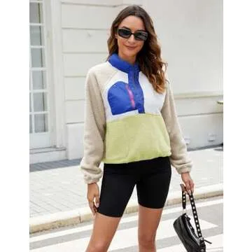 Show more Discover the epitome of comfort and style with the AMEBELLE Women’s Lightweight Fleece Pullover Jacket. Designed for those chilly fall and winter days, this cropped fuzzy sherpa jacket combines softness and warmth without compromising on fashion. Its eye-catching color block design, featuring a half snap button closure and a chic stand collar, makes it the perfect addition to any casual ensemble. Whether you're heading out for a coffee date or lounging at home, this jacket provides a cozy and stylish solution. The garment is crafted from high-quality fabric, ensuring durability and a pleasant wearing experience, making it your go-to outerwear for years to come.