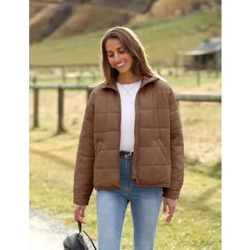 AMEBELLE Women’s Quilted Oversized Puffer Jacket Lightweight Zip Up Winter Warm Coat Outerwear with Pockets(2612-Brown-XL)