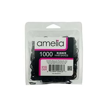 Amelia Beauty | 1000 Count 1/2" Rubber Bands | Premium US Made Rubber Hair Ties | Ideal for Ponytails, Braids & Beards | Strong All Day Hold | Convenient Re-closable Container | Black