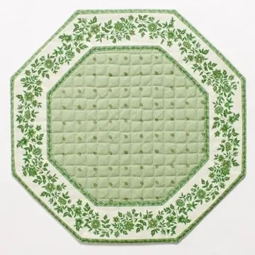 Show moreTransform your dining experience with the exquisite Amelie Michel French 100% Cotton Quilted Octagonal Placemat. Crafted in France, this beautiful placemat showcases a stunning fleurette motif framed by a contrasting floral border, adding a touch of classic French country style to your home. Measuring 15 inches in diameter, it perfectly fits round or smaller tables, making it an ideal choice for any dining occasion. Not only does it elevate your table setting, but it is also designed to endure the rigors of everyday use while maintaining its charm and elegance.