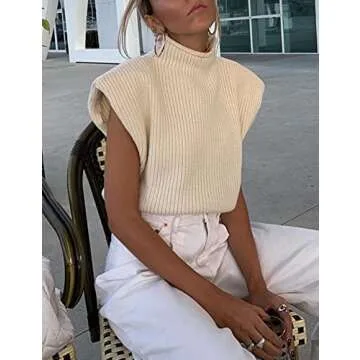 Ameliever Women's High Neck Knit Sweater Vest Sleeveless Ribbed Pullover Tank Tops