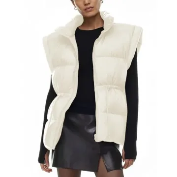 Ameliever Womens Puffer Vest Stand Collar Quilted Zip Up Padded Gilet Puffy Sleeveless Jacket Bubble Vest(Beige-S)