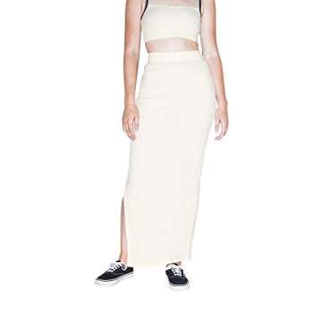 Show moreIntroducing the **American Apparel Women's Thick Rib Maxi Skirt** in sleek **Star White**, an epitome of style and comfort for the fashion-forward woman. Designed with a modern aesthetic, this skirt features a flattering **skinny fit** that contours seamlessly to your silhouette, providing a chic and polished look no matter the occasion. The **right side slit** adds a touch of contemporary flair, allowing for ease of movement and a stylish glimpse of your shoes. Crafted from high-quality ribbed fabric, this maxi skirt assures durability and breathability, making it a staple in your wardrobe.