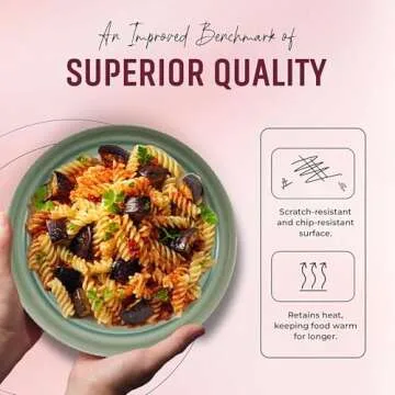 American Atelier 9-Inch Low Bowl (Set of 4) - 42 oz Wide Shallow Porcelain Salad Bowls, Stylish Dinner Plates for Serving Pasta, Soups, Stir-Fries - Stackable Modern Dinnerware (Sage Green)