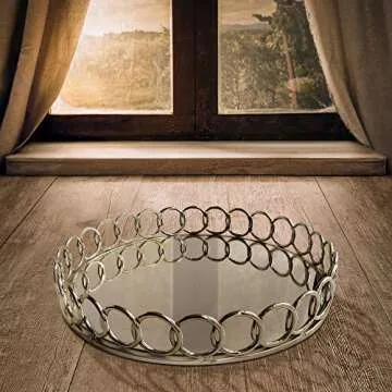 American Atelier Looped Round Mirror Tray Decorative Beautiful Mirror Valet Catchall for Jewelry, Perfume, Toiletries or Makeup Ideal for Dresser, Vanity, Table, Bathroom & More