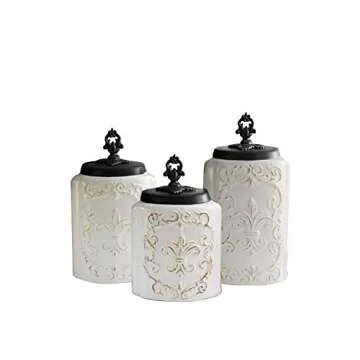 Exquisite American Atelier 3-Piece Canister Set with Fleur de Lis Design