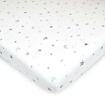 American Baby Company 2 Pack Fitted Pack N Play Playard Sheet 27" x 39", Soft Breathable Neutral 100% Cotton Jersey Pack and Play Sheet, Grey Stars/Zigzag, for Boys and Girls, Fits Most Mini Crib