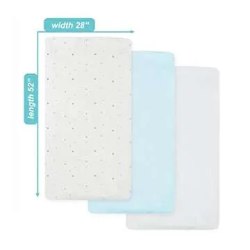 Show more Introducing the American Baby Company 3 Pack Fitted Crib Sheets, expertly crafted to provide unmatched comfort for your little one's peaceful slumber. These sheets are made from 100% Cotton Jersey, ensuring not only a soft touch but also breathability, creating a cozy sleep environment. Measuring 28” x 52” with a depth of 9 inches, they are designed to fit most standard crib and toddler bed mattresses perfectly. Say goodbye to fussy bedtimes and hello to serene sleeping as these sheets gently wrap around your mattress, securing your baby's sleep with snugness and style.