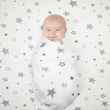 American Baby Company Fitted Pack N Play Playard Sheet 27" x 39", Soft Breathable Neutral 100% Cotton Jersey Pack and Play Sheet, Super Stars, for Boys and Girls, Fits Most Mini Crib Mattresses