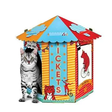 Unlike many competitors, the American Cat Club Cat House offers a unique combination of entertainment and functionality. While most cat houses are merely resting spots, this one integrates a scratching board and a fun, removable top swatting toy, enhancing your cat’s playtime. Additionally, while competitors may not include any accessories, we provide catnip to ensure that your kitty uses the scratching pad effectively, bringing exceptional value to our customers. Our vibrant circus design makes it stand out in any home, capturing both beauty and fun!
