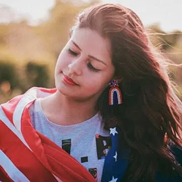 American Flag Dangle Earrings Beaded - Handmade 4th of July Patriotic Earrings, Independence Day Accessories (RAINBOW)