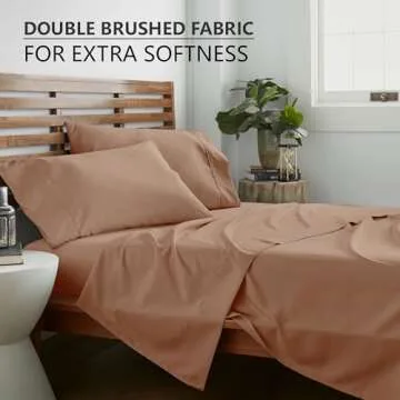 American Home Collection Queen Sheet Set - 16-Inch Deep Pocket - Ultra Soft Microfiber Queen Size Bed Sheets - Breathable, Wrinkle and Fade Resistant, Easy Care - 4 Piece Set (Queen, Tan)