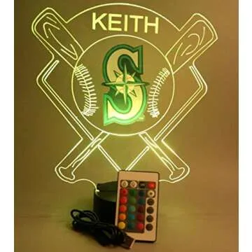 Show moreLight up your space with the American Pro Baseball Stadium LED Night Light! This unique table lamp doesn't just illuminate your room; it transforms it into a haven for sports enthusiasts. Proudly made in the USA, our lamp features a licensed decal from your favorite team and is fully customizable with your name, making it an exceptional addition to any fan's collection. Measuring 12" L x 12" W with a 1/8" thick design, it fits perfectly on a nightstand or desk, adding a personal touch that no other night light can offer.