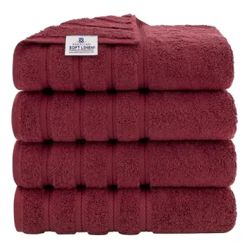 Show more Introducing the American Soft Linen Luxury 4 Piece Bath Towel Set, your new essential for a comfortable and sumptuous bathing experience! Crafted from 100% premium Turkish cotton, these extra-large bath towels measure a generous 27 x 54 inches, ensuring you are enveloped in softness every time you step out of the shower. With their luxurious feel and vibrant bordeaux red hue, these towels not only provide exceptional absorbency but also add a touch of elegance to your bathroom decor. Each towel has been rigorously tested and is OEKO-TEX STANDARD 100 certified, so you can rest assured they are free from harmful substances, making them a safe and stylish choice for your home.