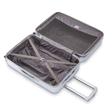 American Tourister Moonlight Hardside Expandable Luggage with Spinner Wheels, Iridescent White, Checked-Medium 24-Inch
