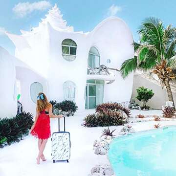 American Tourister Moonlight Hardside Expandable Luggage with Spinner Wheels, Marble, Checked-Medium 24-Inch