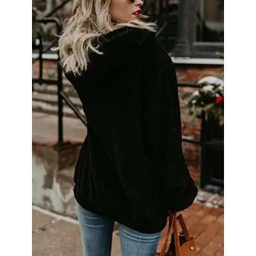 Show more Introducing the American Trends Oversized Sweatshirt for Women, the ultimate combination of style, comfort, and functionality. Crafted from an ultra-soft blend of 95% polyester and 5% spandex, this fluffy Sherpa hoodie is designed to keep you warm while being gentle on your skin. Its oversized silhouette caters to a variety of body shapes, making it a versatile addition to any wardrobe. Whether you're lounging at home, going for a jog, or running errands, this pullover is perfect to keep you chic and cozy in any situation.