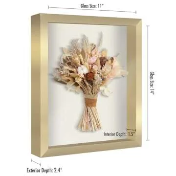 Americanflat 11x14 Shadow Box Frame with Shatter-Resistant Glass - Silhouette Collection - Large Shadow Box Display Case for Tabletop and Wall Display - Gold with Soft Felt Back