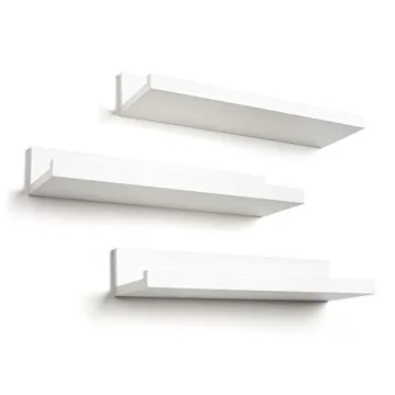 Show more Introducing the perfect solution for your space-saving needs: our stunning floating shelves from Americanflat! Crafted with meticulous attention to detail, these 14x4 floating shelves are made from high-quality engineered wood (MDF) and feature a sleek white finish that seamlessly fits into any decor. Whether you're looking to showcase your favorite photographs, trophy collections, or decorative items, these shelves offer both functionality and style.