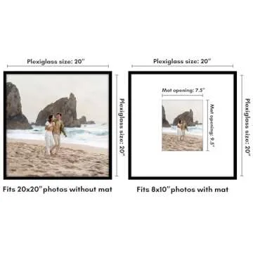 Show moreIntroducing the Americanflat 20x20 Picture Frame, the perfect way to showcase your most cherished memories! This elegantly designed frame comes in a sleek black finish, making it an ideal addition to any home decor style. Crafted from durable and high-quality PVC material, it not only ensures longevity but also adds a modern touch to any space. What's more, the frame features a polished plexiglass front that offers clarity and protects your pictures while enhancing the visual appeal of every display. Whether you're framing a beloved family portrait, a captivating piece of artwork, or a memorable event photograph, this frame is designed to fit both an 8x10 photo with the included mat or a larger 20x20 photo without the mat, offering exceptional versatility for your home's display needs.