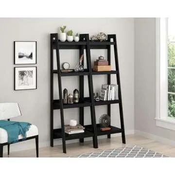 Show moreIntroducing the Ameriwood Home Lawrence 4 Shelf Ladder Bookcase Bundle, a striking addition to any living space that merges contemporary style with functional storage. Crafted with a sleek black finish, this bookcase not only serves as an elegant display for your cherished books and decorative items but also enhances your home’s modern aesthetic. The bundle includes two ladder-style bookshelves, enabling you to leverage vertical space effectively while offering the flexibility to arrange them side by side or separately in different rooms. With dimensions of 60 inches in height, 20.5625 inches in width, and 18.5 inches in depth, these bookshelves are perfect for any nook or large wall in your home.