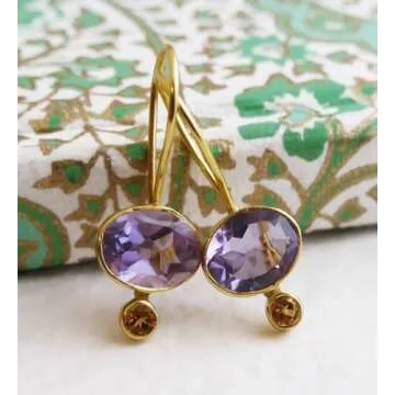 Amethyst and Citrine Gold Plated Sterling Silver Drop Earrings - Natural Gem Gemstone - Birthday Valentine's Mother's Day Gift - Handmade Jewellery Gift Ideas for Women (Amethyst and Citrine)